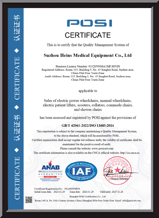Selezione dei materiali: Heins Medical Equipment è estremamente scrupolosa nella selezione del materiale di superficie del bracciolo della sedia a rotelle elettrica comfort intelligente. Il materiale in gomma morbida con una formula speciale è accuratamente selezionato, che ha eccellenti prestazioni antiscivolo. La sua superficie ha una struttura sottile, simile al disegno del modello sulla superficie di un pneumatico per auto, che può aumentare significativamente l'attrito tra la mano dell'utente. Sia in un ambiente asciutto che con le mani leggermente sudate, gli anziani possono tenere saldamente i braccioli. Anche se la sedia a rotelle incontra strade sconnesse durante la guida, le mani non scivolano facilmente a causa delle vibrazioni, fornendo una solida garanzia per la sicurezza degli anziani. Ad esempio, nello scenario di utilizzo reale, una persona anziana è uscita su una sedia a rotelle in una giornata piovosa. Anche se aveva le mani un po' bagnate, è riuscito comunque a controllare facilmente la sedia a rotelle e ad arrivare a destinazione senza problemi grazie al materiale antiscivolo del bracciolo.